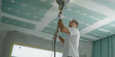 Professional taping, mudding, sanding, to achieve smooth or custom finishes. We also care about dust not going everywhere (this is very important) so we keep the area enclosed to contain it.