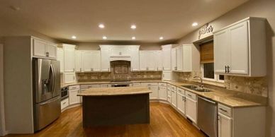 Custom cabinetry, countertops, backsplashes, flooring, and layout updates for a more functional and stylish kitchen.